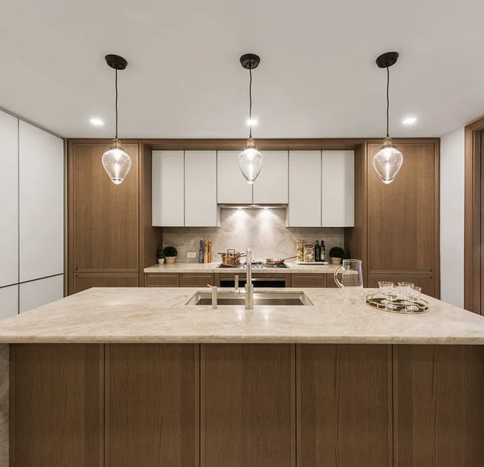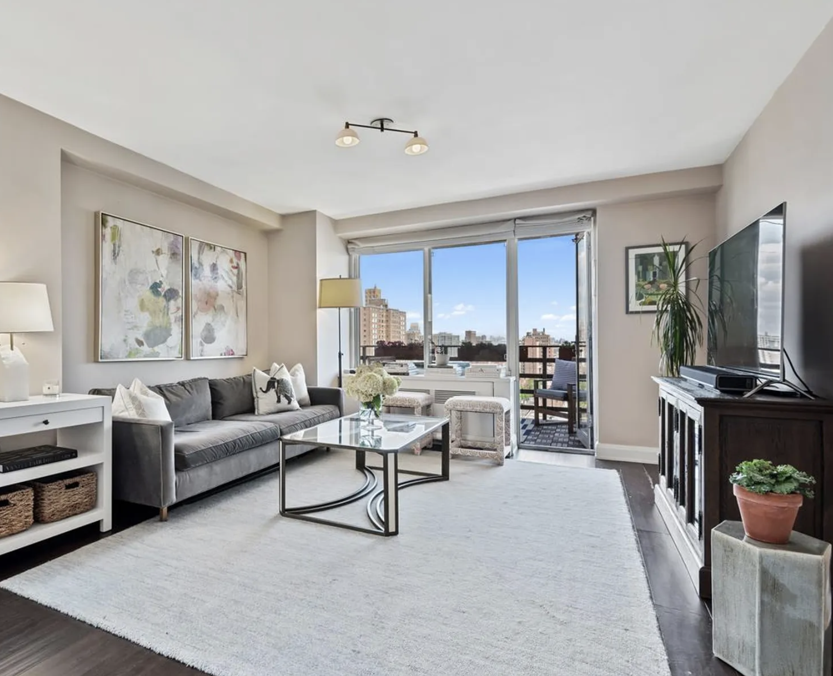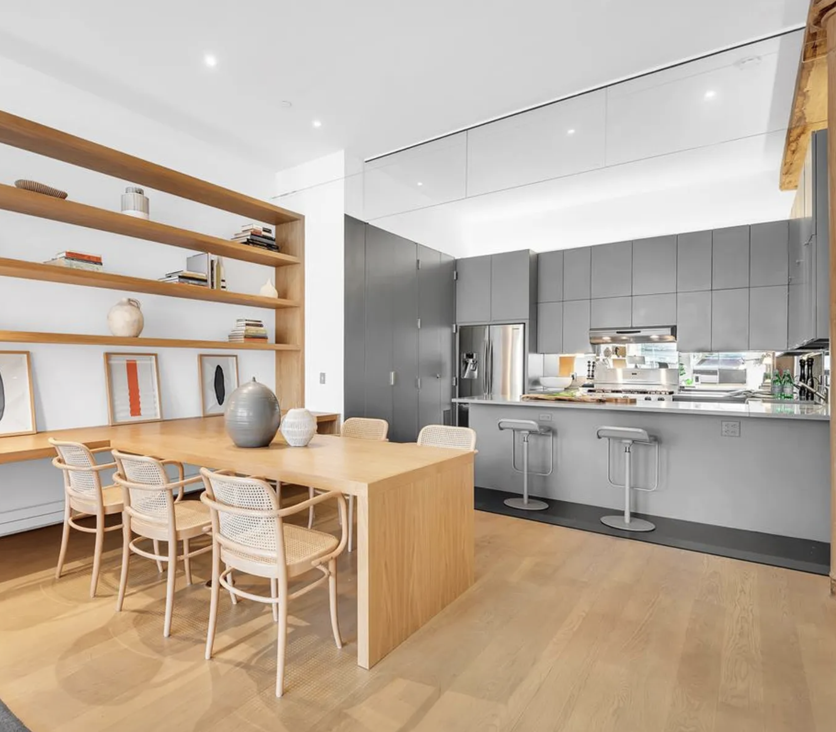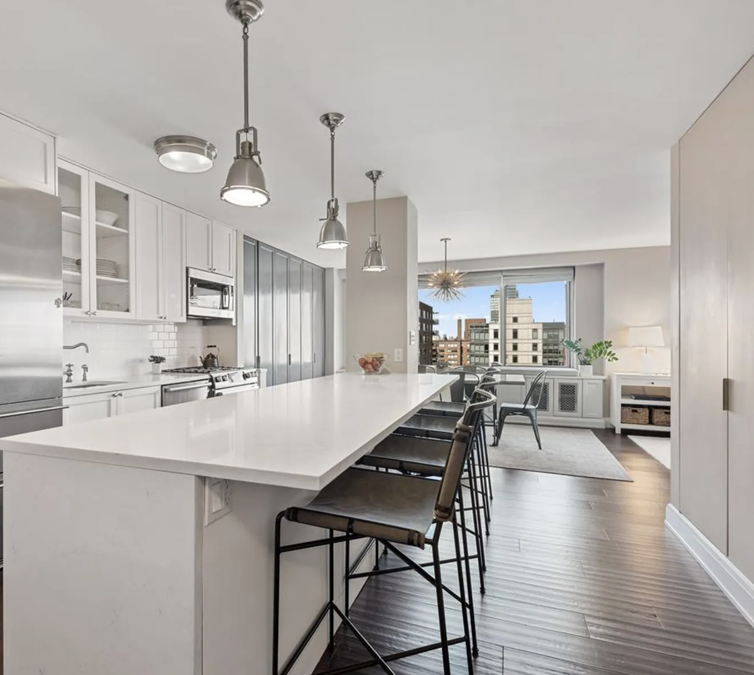 Reimagined by architect Thierry Despont, the residence blends prewar grandeur with modern finishes, featuring an elegant eat-in chef’s kitchen with Calacatta marble and Miele appliances, a serene corner primary suite with spa bath and steam shower, and three exposures through oversized windows that flood the home with natural light.