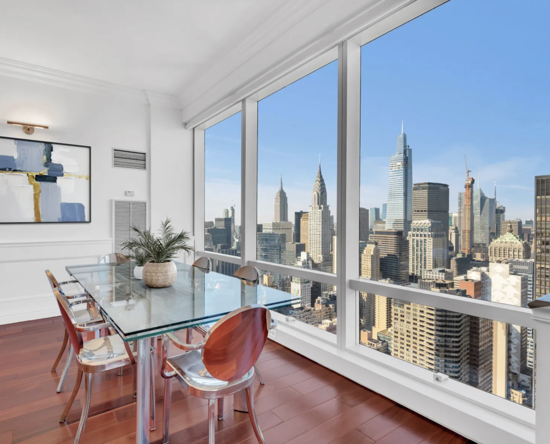 Welcome to Apartment 60E at 845 United Nations Plaza, a stunning two-bedroom, two-bathroom corner residence with 1,493 square feet of light-filled living space and sweeping East River and Manhattan skyline views. Floor-to-ceiling windows frame dramatic north and west exposures, while the open living and dining area is perfect for entertaining or relaxing above the city.