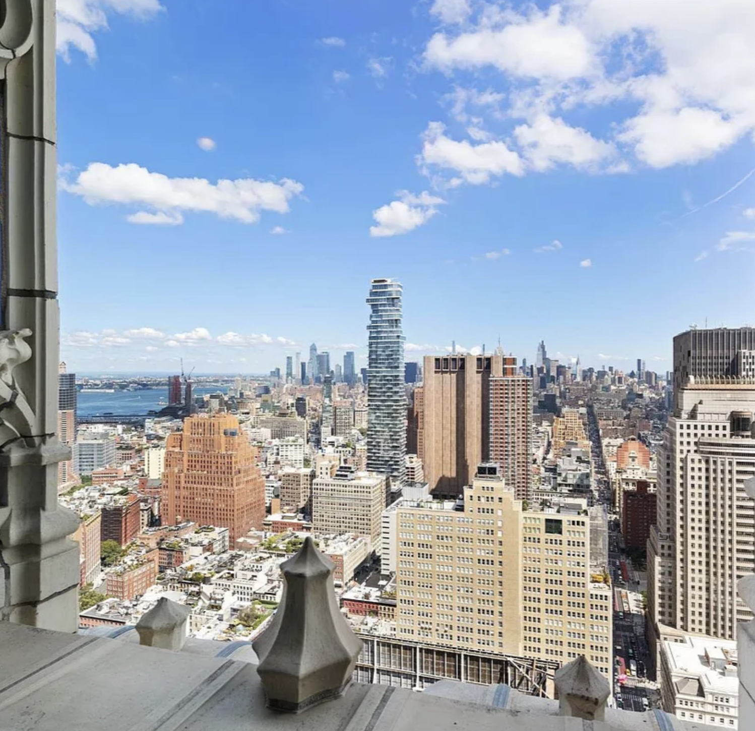 Residence 38A at The Woolworth Tower Residences is a rare loft-like luxury home set high within one of New York City’s most iconic landmarks, offering nearly 12-foot ceilings and sweeping skyline and river views framed by original terra-cotta architectural surrounds.